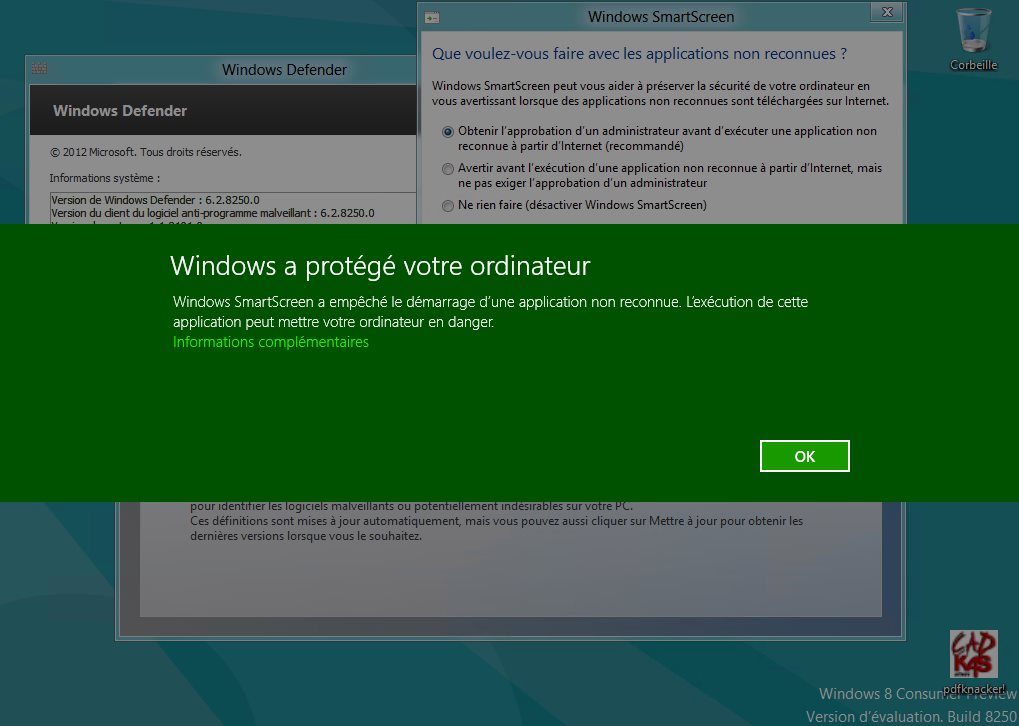 Dès lors, aucun code malveillant ne peut s’exécuter sans l’approbation préalable de l’utilisateur, Windows informant ce dernier de l’éventuelle dangerosité d’un code non reconnu comme sain par la base de réputation.