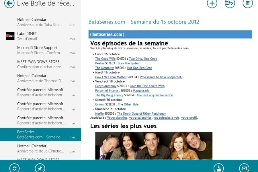 D’accord, elle est austère. Mais si on fait abstraction de cet aspect dépouillé, l’app « Courrier » de Windows 8, qui est intégrée avec l’app Calendrier et l’app Contacts, fait son travail. Contrairement à ce que les « Previews » laissaient croire, elle est complète et supporte la plupart des webmails, Microsoft Exchange, Imap et même POP3.