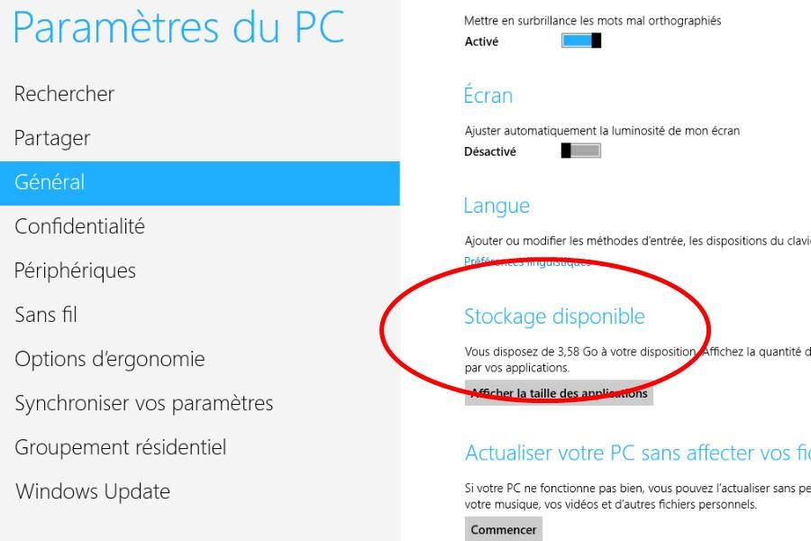 Les tablettes Windows sont toutes équipées de lecteur SD ou micro-SD, histoire de booster le stockage à coup de cartes de 64 Go. Le centre des paramètres du PC affiche en permanence l’espace de stockage interne libre restant dans la section générale.