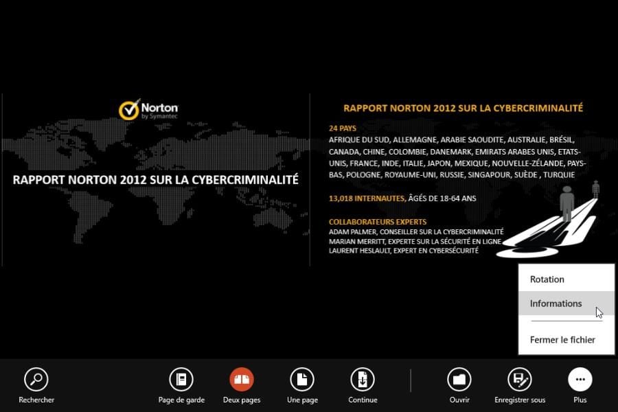 Windows 8 intègre un lecteur de PDF pour le nouvel environnement. Il présente deux avantages majeurs. D’abord il est plus rapide et plus léger que celui d’Adobe. Ensuite, il est plus protégé que le lecteur d’Adobe contre les malwares, puisqu’il évolue dans l’univers sandboxé et protégé de la nouvelle interface.