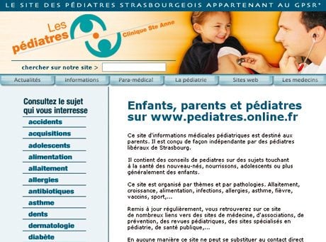 Animé par une dizaine de pédiatres strasbourgeois, ce site s’adresse avant tout aux parents. Les pathologies ou les questions courantes que l’on peut se poser sur l’allaitement, le sport, les affections ORL ou encore la pousse