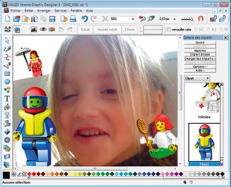 Outre les désormais traditionnelles fonctions d’amélioration de vos photos (anti-yeux rouges, optimisation des couleurs, du contraste, suppression des défauts, etc.), Xtreme Photo & Graphie Designer 2 vous propose toute