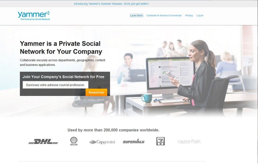 Yammer, racheté en juin dernier par Microsoft, Yammer s’intègre à de très nombreuses applications d’entreprise, comme Microsoft SharePoint, HootSuite, Zendesk, Salesforce.com, Microsoft Dynamics et SAP. Le réseau social compte plus de cinq millions d’utilisateurs actifs en entreprise.