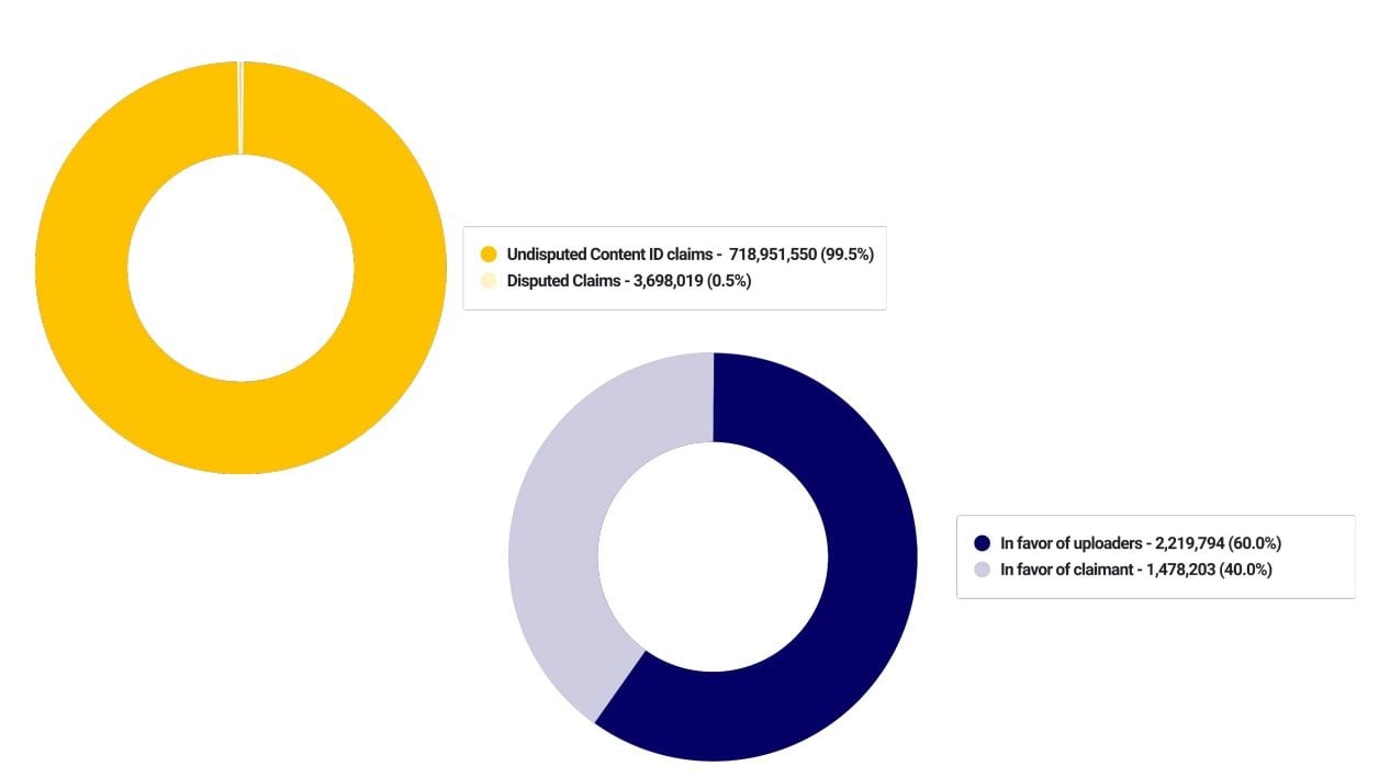 Sur plus de 722 millions de vidéos détectées par Content ID, 99,5% n’ont pas fait l’objet de contestation par les personnes qui les ont mis en ligne. Il reste cependant environ 3,7 millions de vidéos qui ont abouti à un litige entre l’uploader et les ayants droit.
