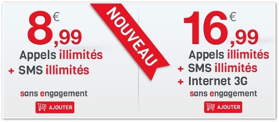 La première offre est une bonne affaire. Elle comporte des appels vers les fixes et les mobiles en France et des SMS illimités pour 8,99 euros, ce qui est le tarif le moins cher du marché. Les autres opérateurs – B&You, Joe Mobile ou encore Sosh – proposent des forfaits un à deux euros plus cher. Le second forfait propose quant à lui, 500 Mo de data en 3G, en plus des appels et des SMS illimités pour 16,99 euros par mois.