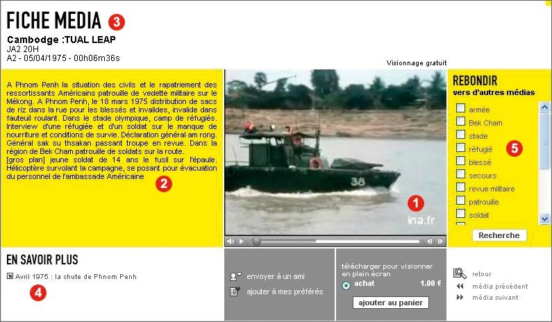 Au-dessus de ces deux fenêtres, figurent des informations sur la fiche média : durée, date et chaîne de diffusion, nom de l’émission et des intervenants.