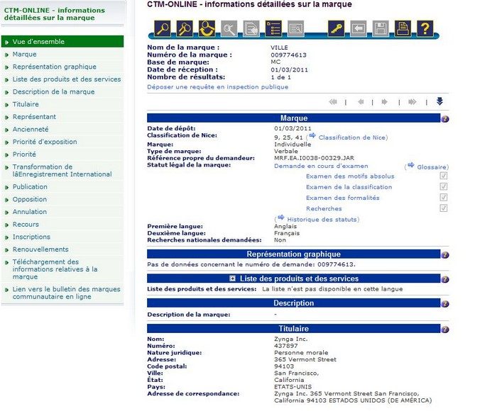 Une marque peut-elle s’approprier sans restriction un nom commun ? C’est la question que pose la récente demande de Zynga auprès de l’Office de l’harmonisation dans le marché intérieur (OHMI), l’organe européen compétent en matière d’enregistrement de marques, de dessins ou de modèles. L’éditeur américain, connu pour ses jeux Farmville, Cityville et Fishville, vient de déposer une demande auprès de l’office pour la marque « ville ».
