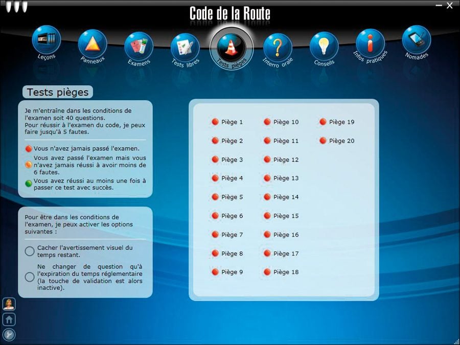 Très complet, ce coffret réunit tous les éléments dédiés à la conduite de la gamme MicroApp. Non seulement l’acheteur se dote d’outils pour réviser son code sur son PC et son lecteur de DVD de salon, mais il peut également en télécharger une partie sur son iPod, sa console PSP, son téléphone mobile ou écouter ses cours en MP3. Sans oublier les traditionnels ouvrages papier fournis avec. Même les disques signalant un jeune conducteur ou une conduite accompagnée font partie du lot. Techniquement, nous avons particulièrement apprécié le nombre total de tests proposés, ainsi que la rubrique Tests pièges, un vrai calvaire. S’il réussit ce parcours du combattant, le candidat aura son code haut la main.