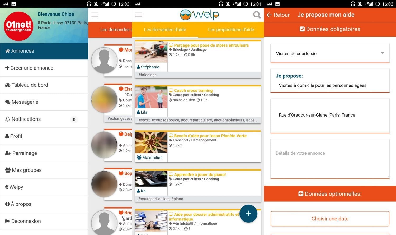 S’inscrire sur Welp ouvre le droit de poster soi-même des annonces ou de répondre aux demandes de la communauté. Il peut s’agir de dispenser ou de recevoir des cours particuliers, de réaliser de petits travaux, d’offrir un coup de main pour un déménagement, de rendre visite aux personnes isolées ou encore de donner des livres, jouets, vêtements dont on ne se sert plus.