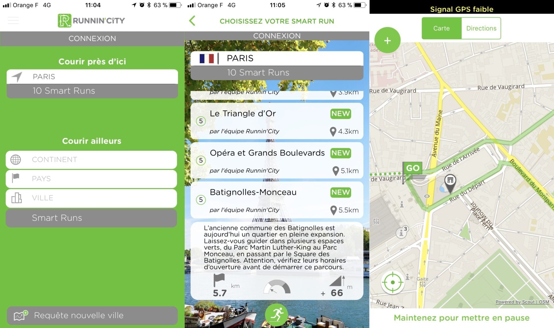 En fonction de l’endroit où vous vous trouvez, et de la distance que vous souhaitez parcourir, l’application génère des itinéraires touristiques vous grâce auxquels vous pouvez découvrir les monuments et bâtiments locaux. Fonctionnant dans une centaine de villes à travers le monde, Runnin’City vous indique la direction à prendre à chaque étape du parcours.