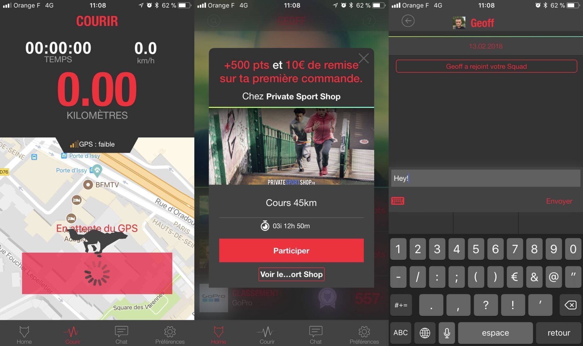 Chaque séance de running à laquelle vous prenez part avec l’application vous rapporte des points qui permettent à votre équipe de remonter dans le classement mondial. SquadRunner se veut ludique et intègre une messagerie instantanée pour vous inciter à communiquer avec les autres, tandis qu’il est possible d’obtenir quelques points supplémentaires pour votre l’équipe en répondant aux quiz qui vous sont soumis.