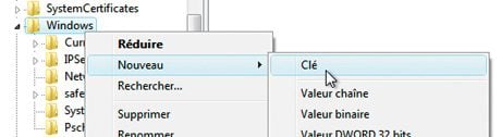 gauche, déroulez la clé HKEY_LOCAL_MACHINESOFTWAREPoliciesMicrosoftWindows. Faites un clic droit sur la clé Windows et sélectionnez Nouveau puis Clé.
