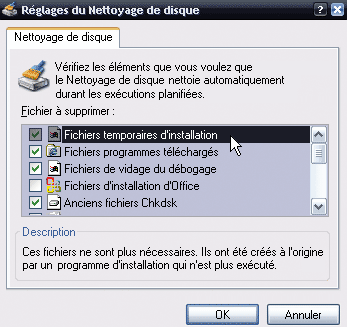 nettoyage qui vous conviennent. Cliquez sur OK.