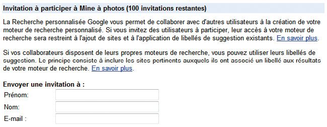A partir du panneau de configuration, vous pouvez également partager votre moteur avec vos amis ou vos collègues dans le but de l’enrichir. Cliquez sur l’onglet Collaboration. Saisissez les adresses mails de vos contributeurs l’une après l’autre, vous pouvez envoyer jusqu’à 100 invitations.
