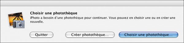 saturer le disque interne de son ordinateur.Pour créer une photothèque ‘ externe ‘, maintenez enfoncée la touche Alt tout en lançant iPhoto. Dans la boîte de dialogue qui s’affiche, cliquez sur le bouton Créer