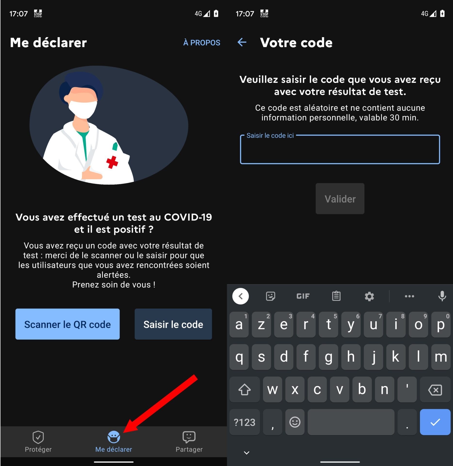 Attention toutefois, le code reçu n’est valable que peu de temps, vous devrez donc vous déclarer dans StopCovid dès que vous avez connaissance de votre résultat positif.