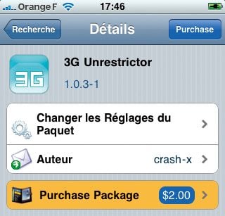 Si, pour passer vos appels, vous ne voulez pas rester connecté en permanence à une borne Wi-Fi, il existe un petit logiciel permettant de passer outre les limitations d’Apple. Pour l’obtenir, lancez Cydia et cliquez sur l’icône Catégorie, puis sur Système et 3G Unrestrictor. Cliquez sur Purchase. Vous devrez vous authentifier pour continuer. Une fois le paiement effectué par Paypal et l’application installée, votre iPhone redémarrera automatiquement. Cliquez sur l’application Unrestrictor puis sur le bouton Edit puis +. Sélectionnez Fring puis Done.