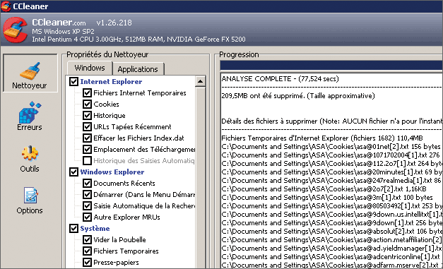 Au fur et à mesure de l’utilisation du PC, les fichiers inutiles s’accumulent sur le disque dur : fichiers temporaires de Windows et d’Internet Explorer, cookies, historiques de navigation Web, etc. Plusieurs centaines de