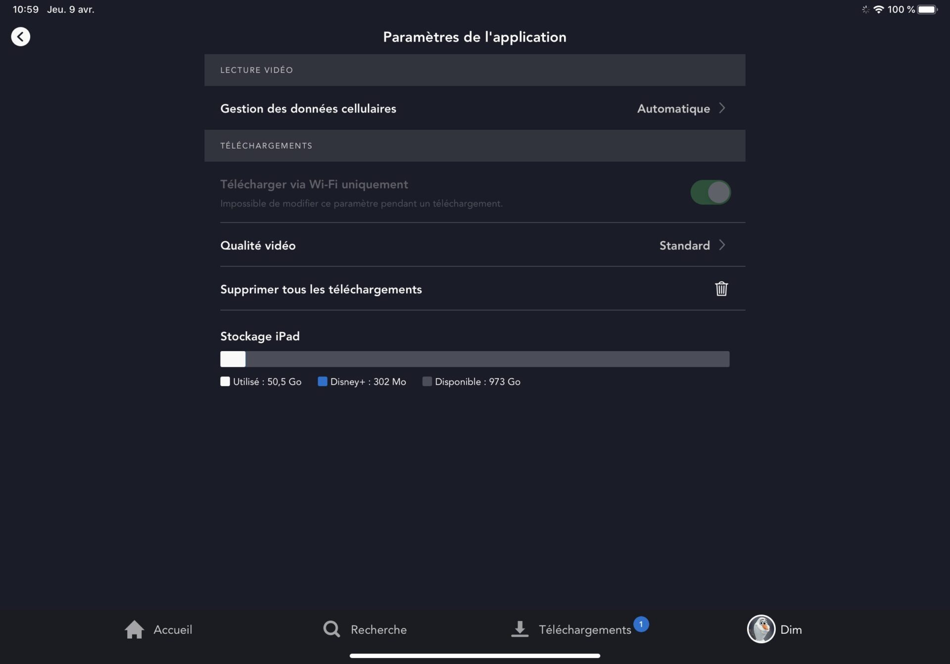 Disney+ ne se contente pas de proposer le téléchargement de ses contenus. Il permet également de choisir la qualité à laquelle vous souhaitez les visionner et par conséquent la place qu’ils occuperont sur votre espace de stockage.