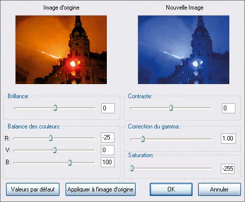 Les réglages semblables se trouvent en cliquant sur Image et Balance des couleurs.