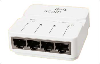 Eteignez tous les équipements qui doivent être reliés au commutateur (PC et modem notamment). Branchez l’une des deux prises RJ45 d’un câble Ethernet sur n’importe quel port du commutateur, et reliez l’autre sur un