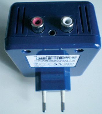 L’autre adaptateur est équipé d’une sortie audio (deux prises RCA blanche et rouge). Reliez à l’aide du câble fourni le boîtier CPL à la chaîne hi-fi. Si votre équipement stéréo n’est pas pourvu de ces prises, vous devrez utiliser le câble minijack également fourni. Reliez l’adaptateur à la chaîne ainsi qu’à une prise électrique.
