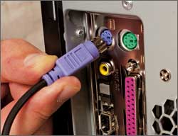 Puis connectez le clavier sur son port PS2, identifiable par sa couleur mauve.