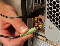 Les enceintes se branchent sur le connecteur mini-jack de couleur verte.