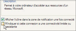 M’indiquer si cette connexion a une connectivité limitée ou inexistante et cliquez sur OK pour valider.