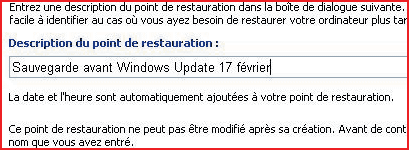 Dans la fenêtre suivante, sous Description du point de restauration, donnez un nom clair à votre point de restauration.