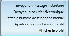 Placez le pointeur de la souris sur l’icône d’un contact : le menu qui apparaît vous permet d’accéder aux fonctions les plus courantes, comme l’envoi d’un e-mail ou l’affichage du profil de ce contact.