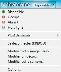 Votre pseudo ou votre adresse de messagerie sont accompagnés de votre statut (disponible, occupé, absent, hors ligne), facilement identifiable grâce à son jeu de couleurs. A des fins de simplification, les autres statuts, comme « de retour dans 10 minutes », ont disparu. En dessous, votre message personnel peut être modifié d’un simple clic. De plus, votre photo est désormais entourée d’une couleur correspondant à votre statut. Il est même possible de remplacer cette photo par une vidéo enregistrée à l’aide de votre Webcam et qui peut s’animer en fonction de votre « humeur » (une notion que nous détaillerons plus loin).