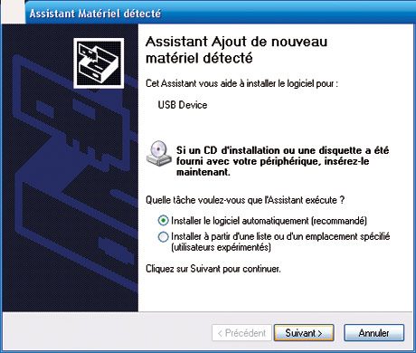 la carte avant de refermer l’unité centrale.Dans le cas d’un boîtier, raccordez-le à une prise USB (si possible à l’arrière du PC ), attendez que Windows affiche la boîte de dialogue de détection dun nouveau périphérique USB et suivez les instructions. Insérez
