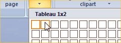 2- La grille qui s’affiche permet de choisir le nombre de colonnes et de lignes du tableau qui, ici, doit comporter six lignes et deux colonnes. Pour cela, glissez le curseur de la souris sur la gauche pour sélectionner deux carrés, puis descendez le curseur jusqu’à la sélection de six lignes et cliquez pour valider.