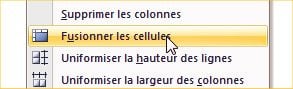 Cliquez, avec le bouton droit de la souris, sur la sélection et choisissez l’option Fusionner les cellules.