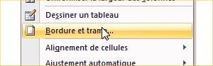 Cliquez avec le bouton droit de la souris sur la sélection et choisissez l’option Bordure et trame.