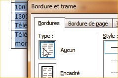 Dans la partie Type de l’onglet Bordures de la nouvelle fenêtre, cliquez sur Aucun. Cliquez sur le bouton OK.