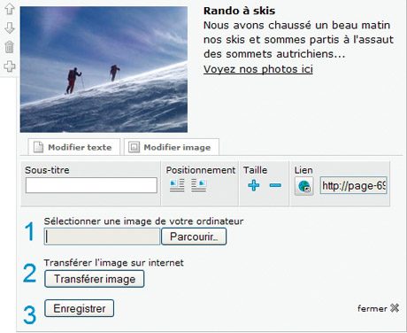 Cliquez sur une image, et un menu apparaît, qui vous permet de la changer en utilisant une banque d’images ou une photo stockée sur votre disque dur à télécharger, etc.