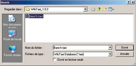 en cliquant sur le lien Click here to open an existing database. Sélectionnez votre base, dans notre exemple, Base fr.taxi. Validez par Ouvrir. Le logiciel affichera immédiatement une page au hasard de