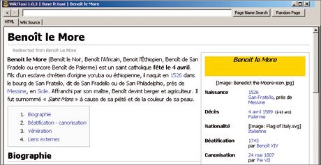 Une fois que vous avez importé la base Wikipédia à WikiTaxi, vous pouvez commencer à surfer hors ligne. Pour cela, lancez WikiTaxi en double-cliquant sur le fichier WikiTaxi.exe. Sélectionnez ensuite une base WikiTaxi