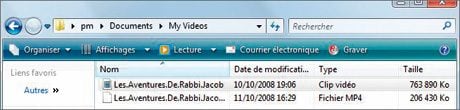 1 – Ouvrez le dossier contenant vos vidéos (le même qu’à l’étape précédente) et constatez l’apparition d’un second fichier portant le même nom que l’original, mais presque quatre fois plus petit. Le
