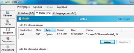 graphique, carte réseau, chipset de la carte mère, Wi-Fi, imprimantes, etc.). Pour ce faire, cliquez sur l’onglet Pilotes et cochez l’option Enable. Insérez les pilotes que vous souhaitez en cliquant sur le