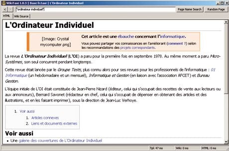 recherchée (partial matches). Un clic sur un des liens proposé vous renverra vers les articles concernés. Dernière astuce, si vous utilisez souvent Wikipédia avec la même base de données et que vous souhaitez y accéder rapidement, vous