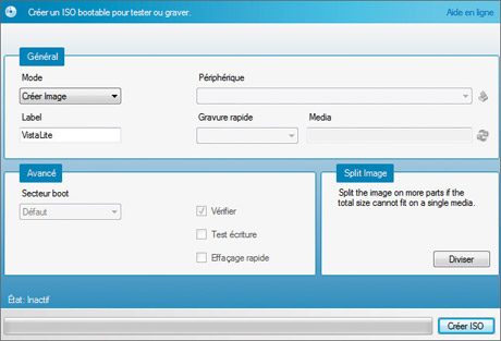 Une fois les modifications effectuées, il ne reste plus qu’à créer l’image ISO de votre DVD, ou de votre CD si vous avez réduit suffisamment la taille de Vista. Nous vous conseillons de créer d’abord une image