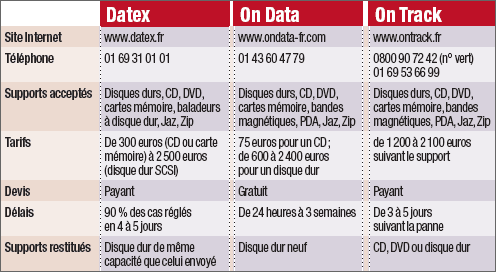 Voilà, vous avez tout essayé mais vos données perdues restent obstinément irrécupérables. Irrécupérables pour vous, mais pas pour des professionnels ! Des sociétés, comme Ontrack, Datex ou Ondata, emploient des dizaines