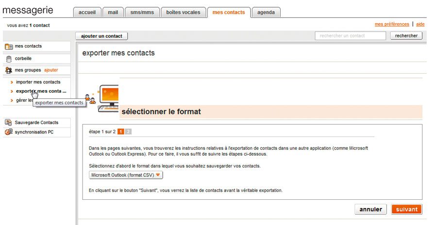 Point intéressant : vous pouvez exporter votre liste de contacts depuis l’espace Web d’Orange dans un fichier portant l’extension CSV. Ce format de fichier est bien reconnu par les logiciels de messagerie Microsoft Outlook et Outlook Express ainsi que par le gestionnaire de contacts inclus dans Gmail. Un format qui peut être également édité et sauvegardé dans le tableau Excel. Sachez, par ailleurs, qu’Orange met à votre disposition un espace de stockage de 10 Go pour vos fichiers de tous types (texte, tableur, photos, vidéos, musiques) accessible via une simple connexion Wi-Fi.