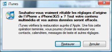 Une fois le firmware d’origine réinstallé sur votre machine, iTunes vous propose automatiquement de restaurer vos contacts, calendrier et autres réglages.
