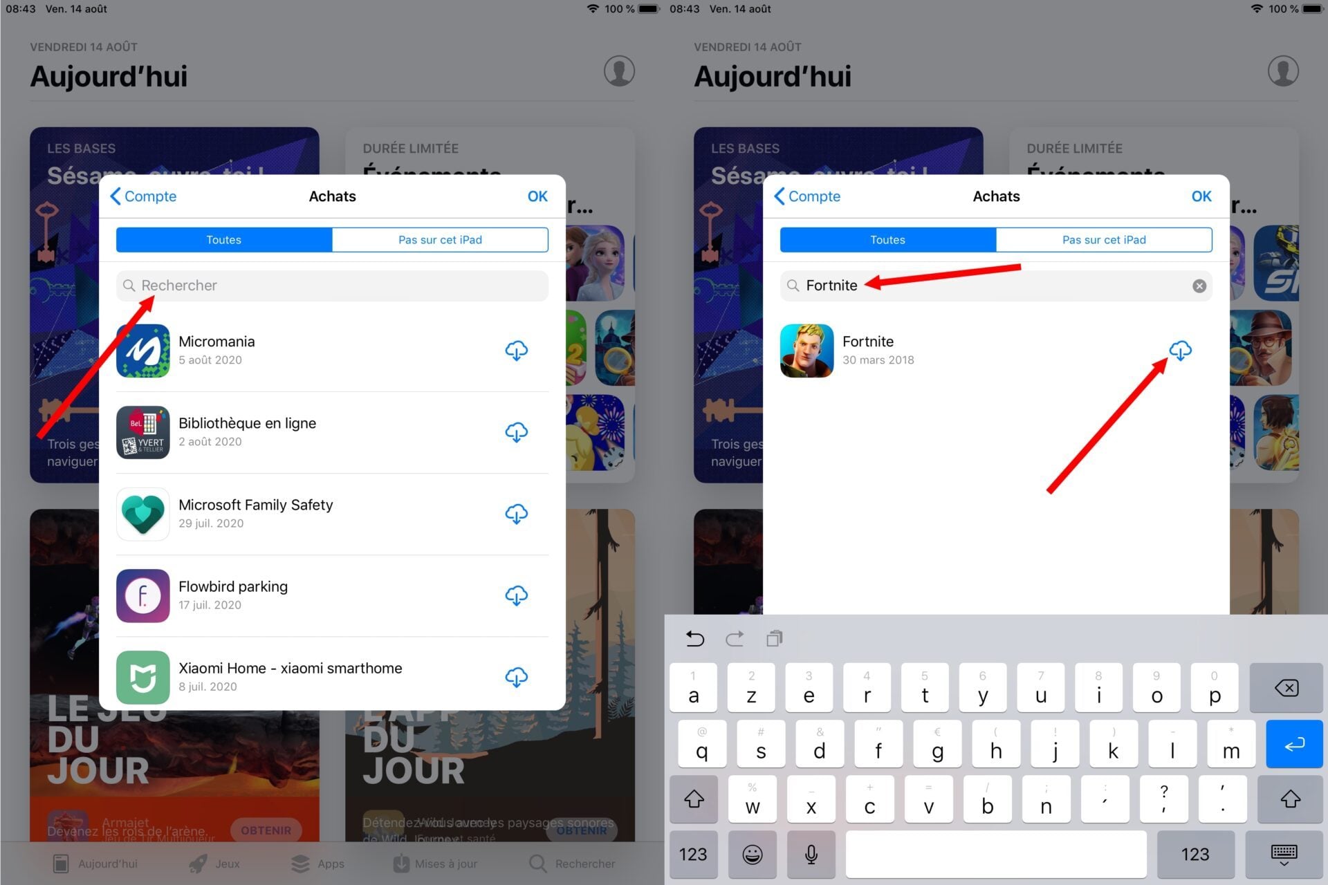 Fortnite a disparu de l’App Store. Toutefois, si vous avez déjà téléchargé le jeu au moins une fois par le passé, celui-ci devrait toujours être disponible dans votre historique d’achat. Vous pourrez donc le télécharger à nouveau sur n’importe quel appareil sous iOS compatible sur lequel vous êtes connecté avec votre identifiant Apple ayant servi à télécharger Fortnite la première fois.