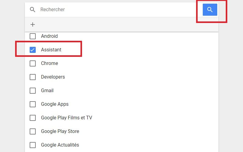 - Dans la liste des produits, cochez uniquement la case Assistant et cliquez sur le bouton de recherche (icône de loupe).