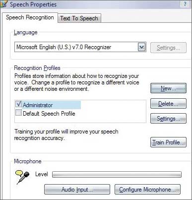 Toujours dans le panneau de configuration, le module Voix (Speech en anglais) s’est enrichi d’un onglet Speech Recognition (reconnaissance vocale), en complément du traditionnel Text To Speech (synthèse